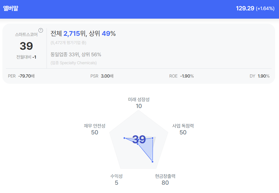 | 앨버말 종목진단 (출처=초이스스탁) |