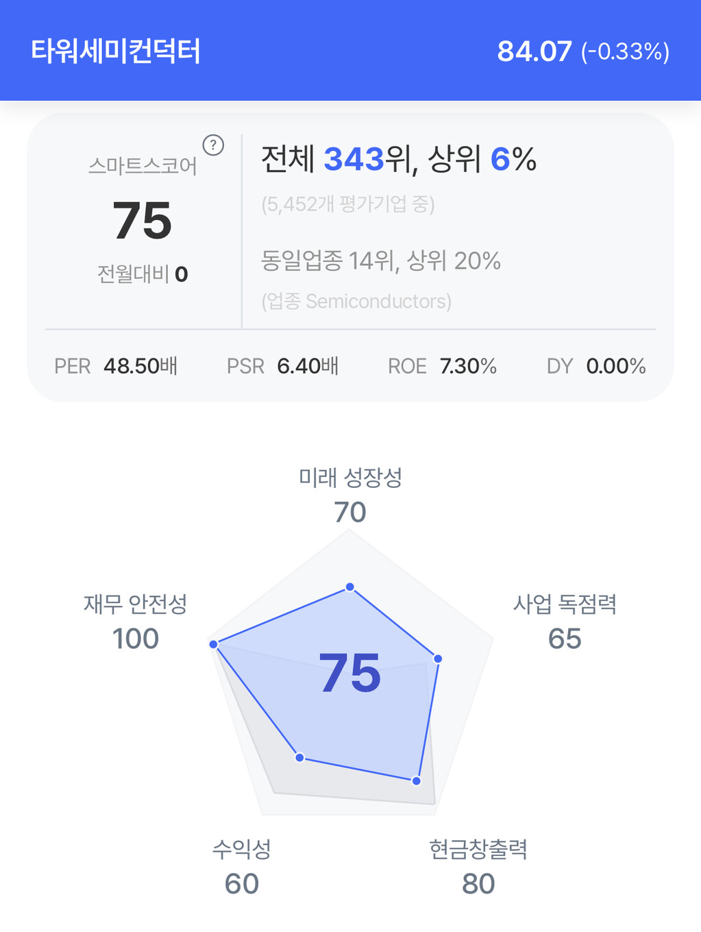 | 타워 세미컨덕터 주가 분석. (자료=초이스스탁) |