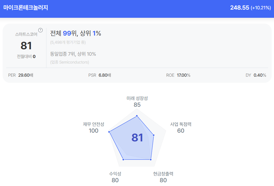 | 마이크론 종목진단 (출처=초이스스탁) |