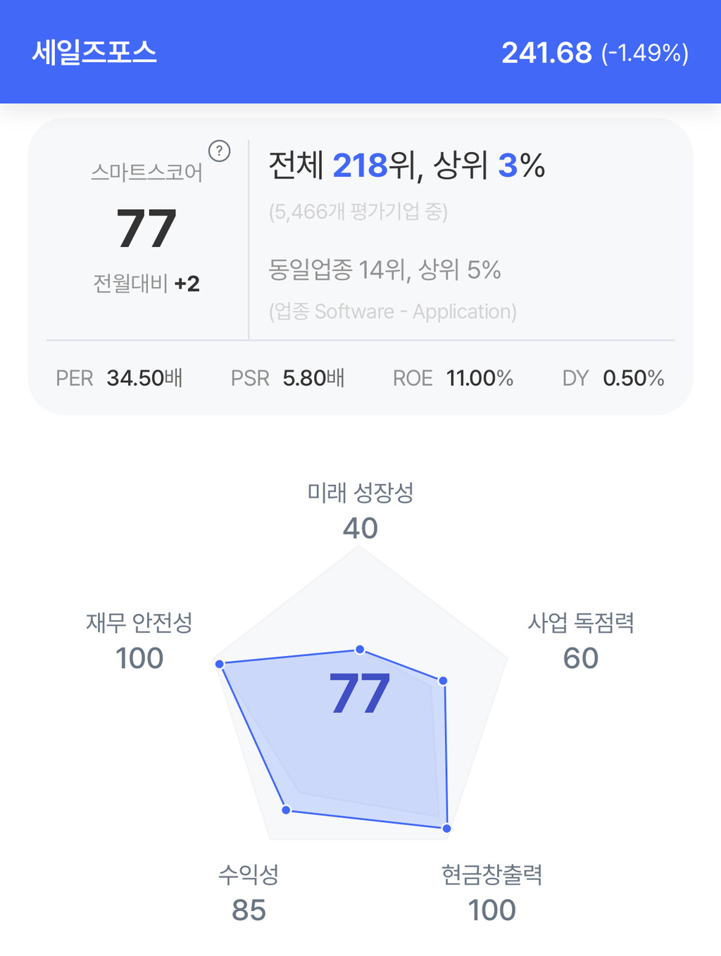 | 세일즈포스 주가 분석. (자료=초이스스탁) |
