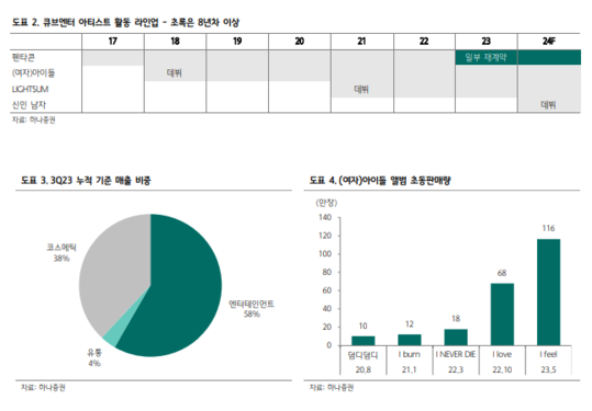 여기에 더해 신인 남자 아이돌의 데뷔도 계획되어 있는 만큼, 실적과 모멘텀이 모두 좋은 만큼 관심 가질 필요가 있다는 조언이다.