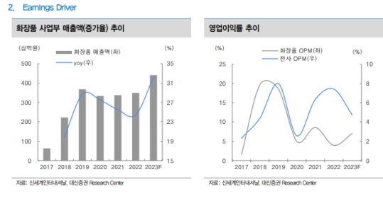 코스메틱 부문은 수입 화장품 매출 호조에 힘입어 양호한 성장 기록한 것으로 파악된다. 비디비치는 현지 판로 직진출 전략에 따라 별도 매출액은 크게 줄었으나 연작, 스위스퍼펙션 등 브랜드들의 매출은 양호한 성장세 지속된 것으로 보인다.