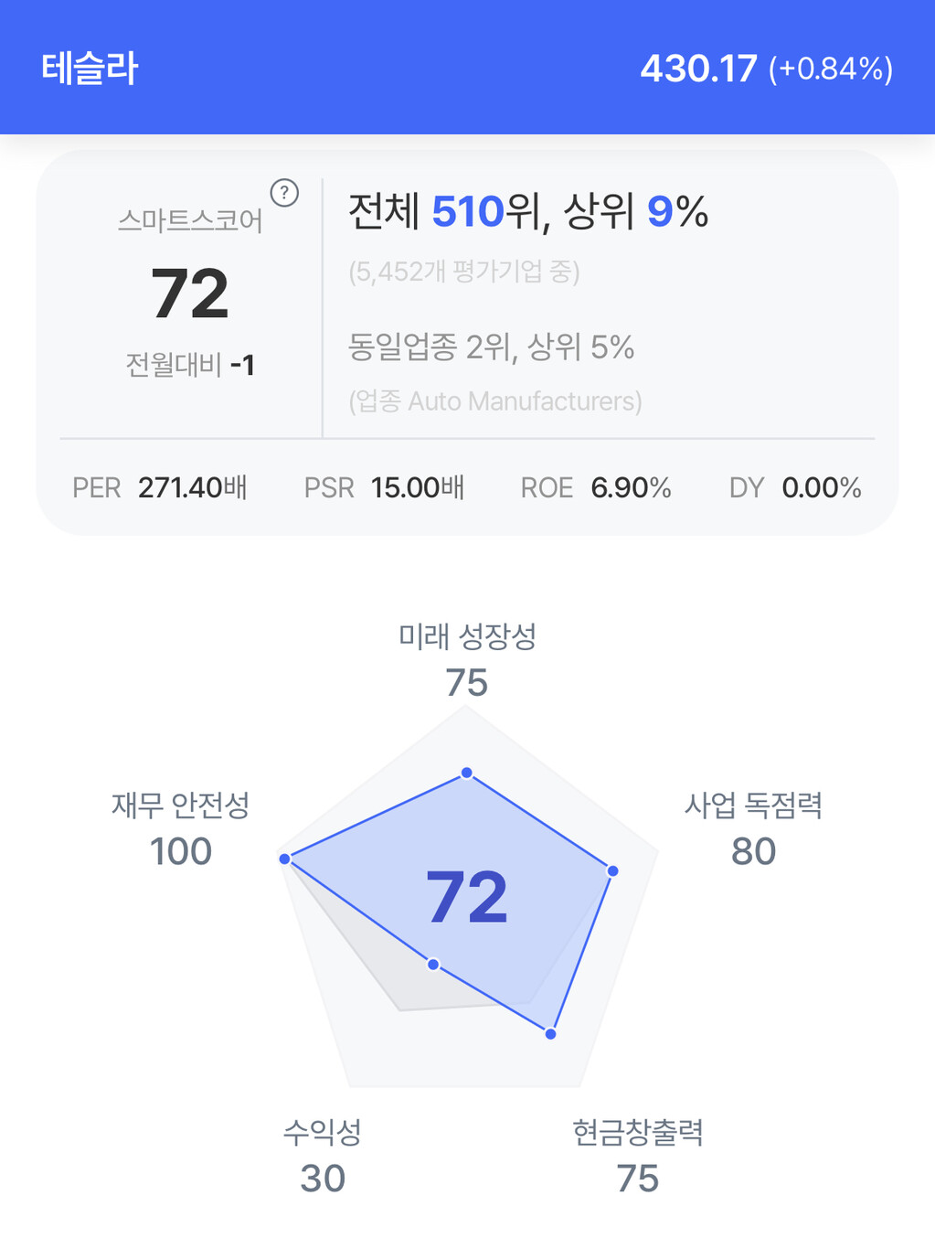 테슬라 주가는 0.84% 상승한 430.17달러로 마감했다.