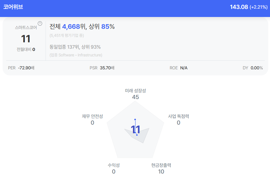 | 코어위브 종목진단 (출처=초이스스탁) |