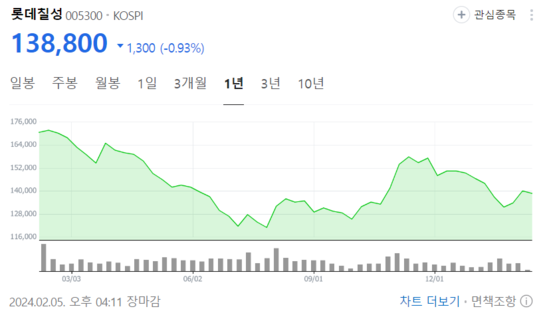 | 롯데칠성 주가추이 (출처=네이버증권) |