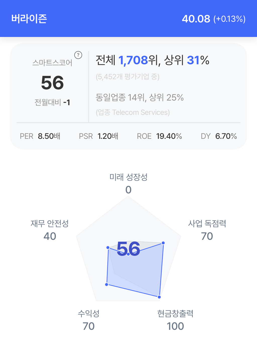 | 버라이즌 주가 분석. (자료=초이스스탁) |