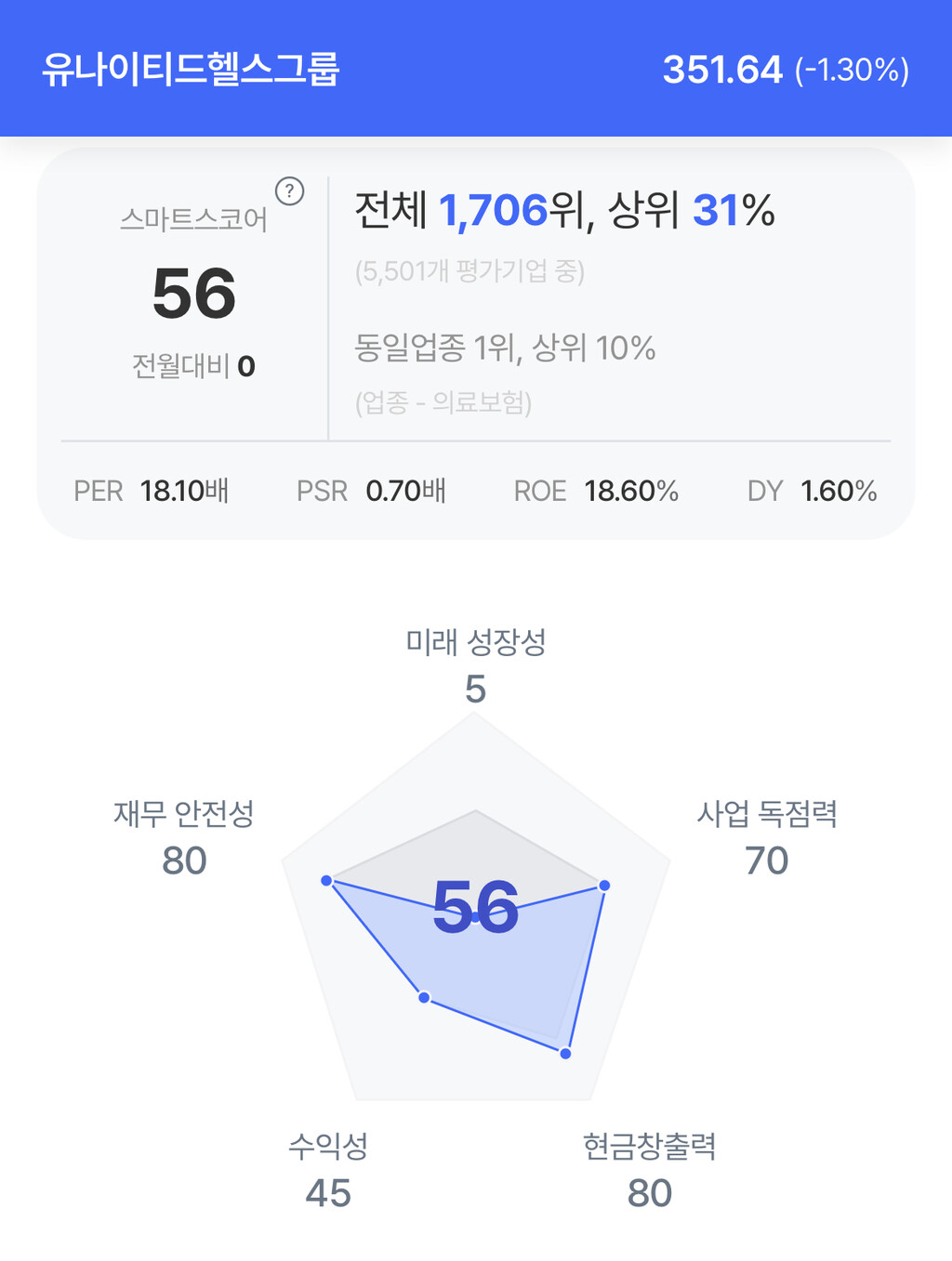 | 유나이티드헬스 그룹 주가 분석. (자료=초이스스탁) |
