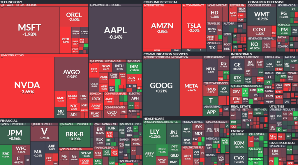 알파벳이 0.1% 소폭 상승한 것을 제외하고 엔비디아와 테슬라는 3% 넘게 하락했고, 아마존과 메타도 2% 넘게 내렸습니다.
