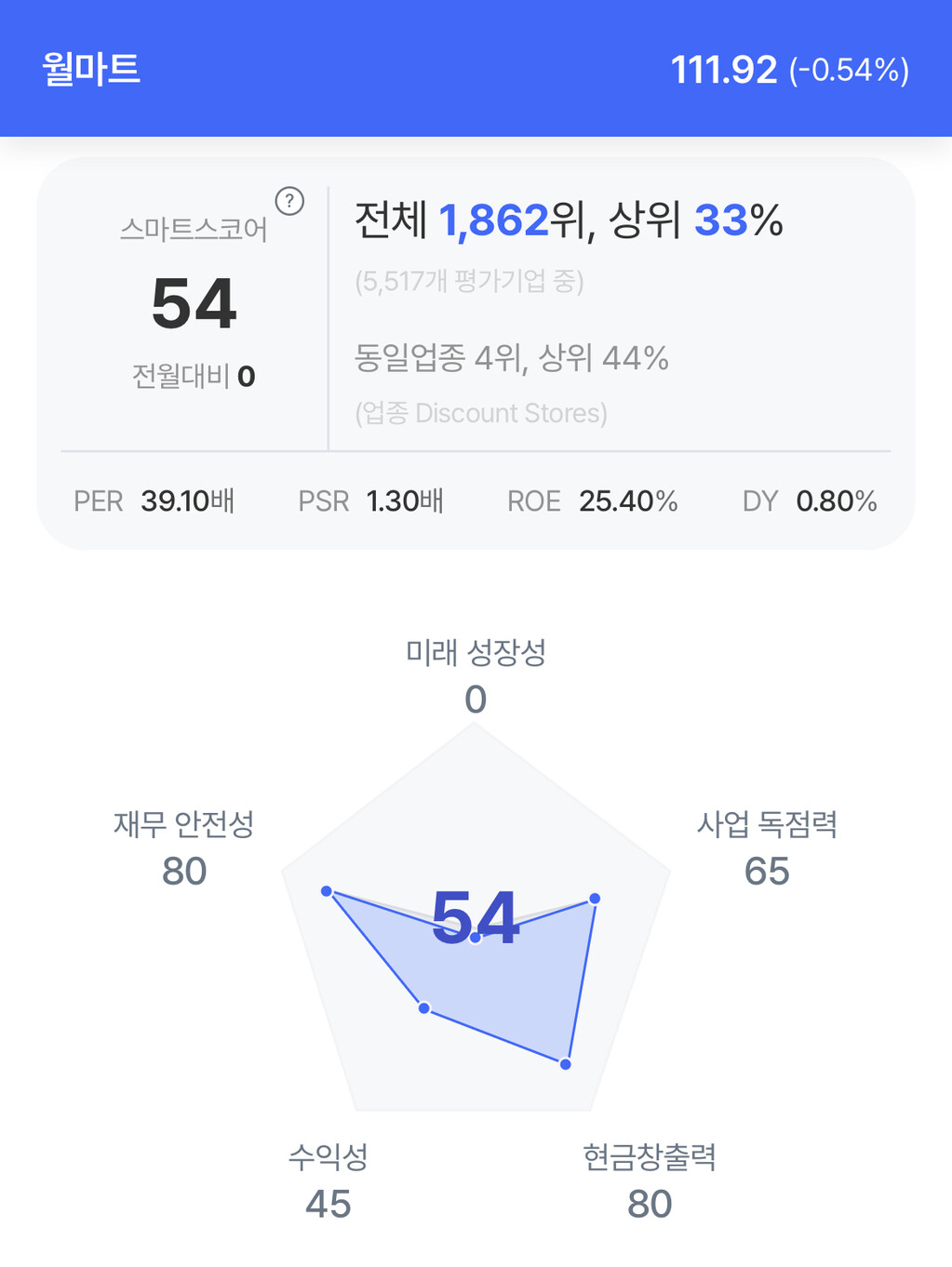 월마트 주가는 0.54% 하락한 111.92달러를 기록했다.