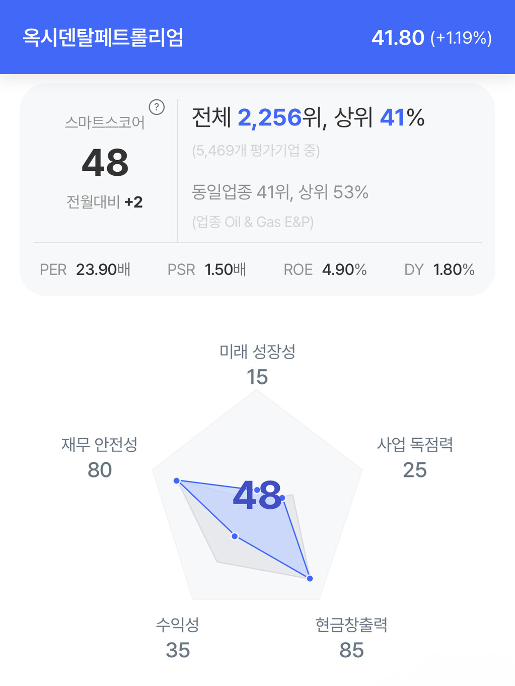| 옥시덴탈 페트롤리움 주가 분석. (자료=초이스스탁) |