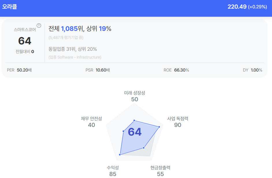 | 오라클 종목진단 (출처=초이스스탁) |