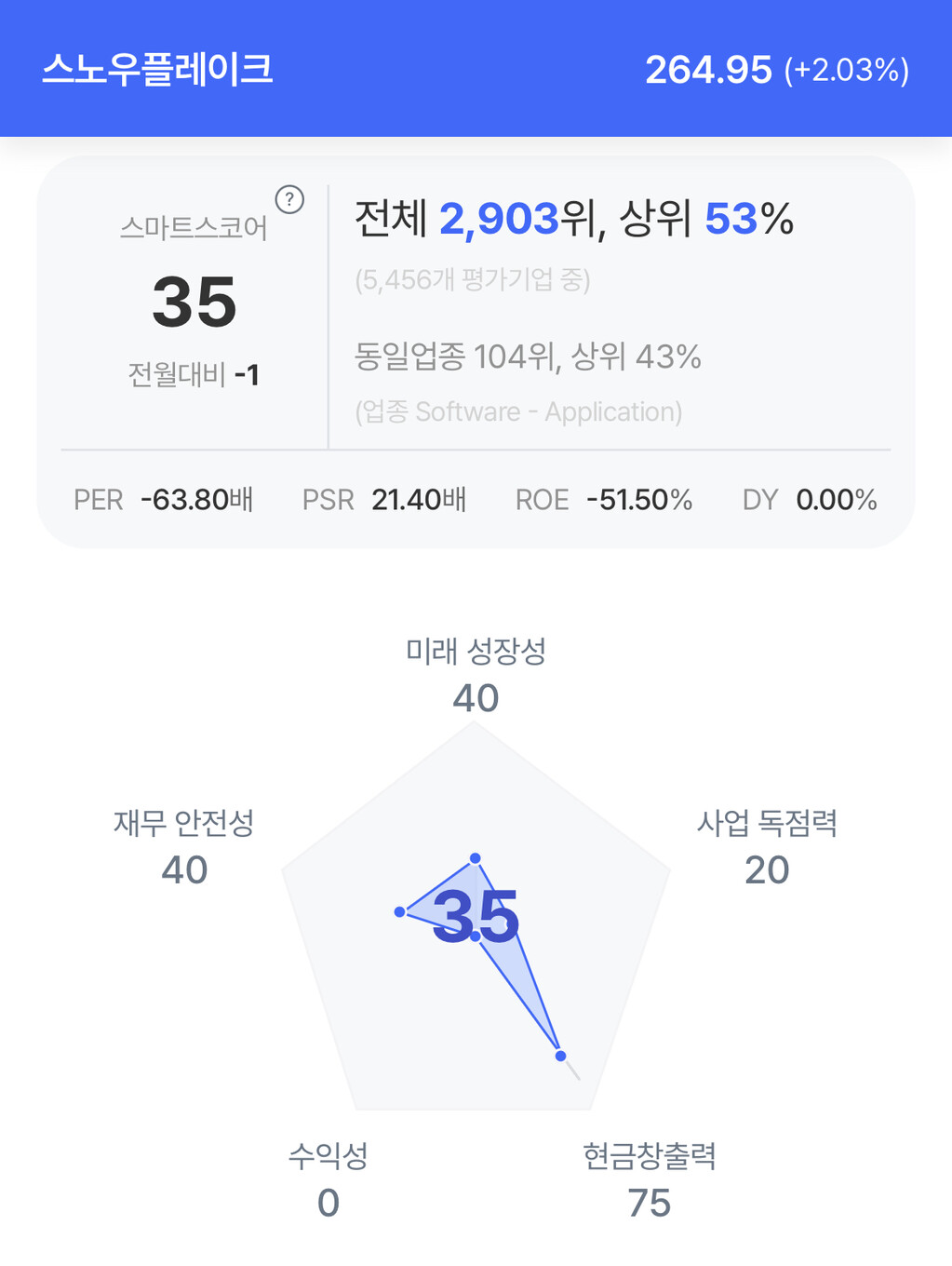 주가는 264.95달러로 2.03% 상승 마감했다.