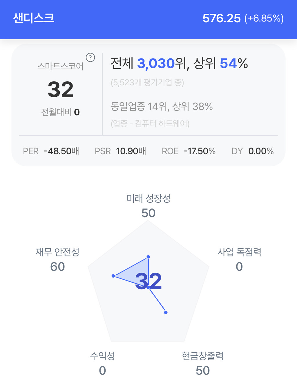 | 샌디스크 주가 분석. (자료=초이스스탁) |