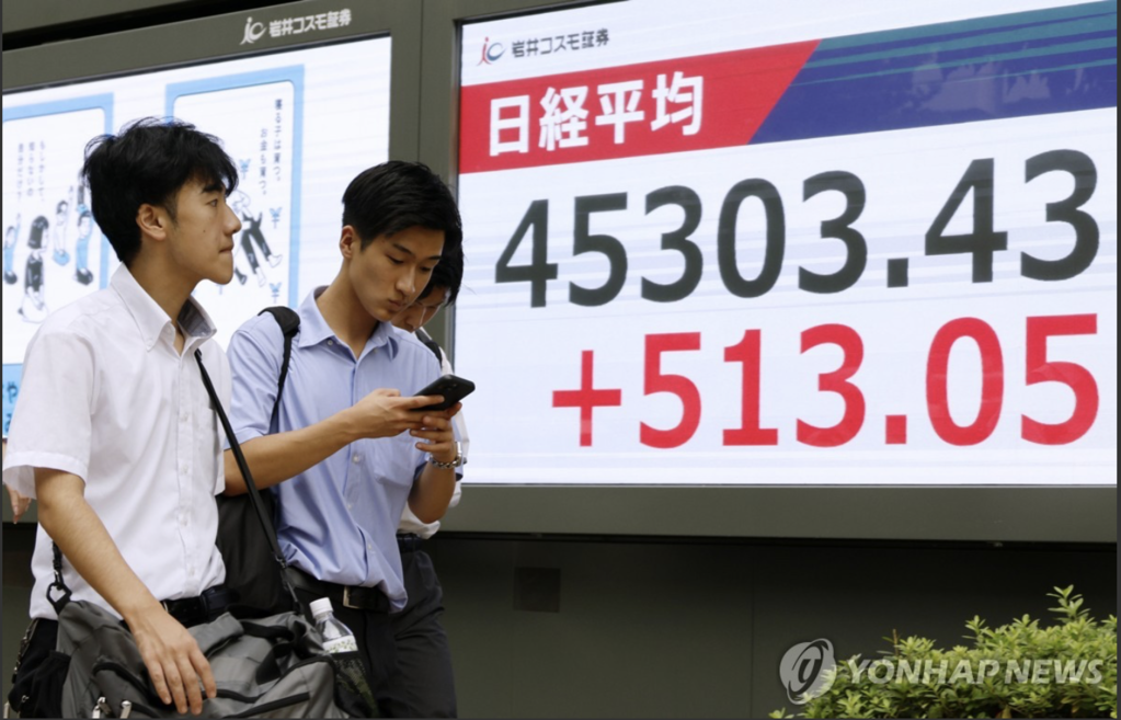 22일 도쿄 주식시장에서 닛케이 지수는 전 거래일보다 447엔 85전(0.99%) 오른 4만5493엔 66전에 거래를 마쳤다.