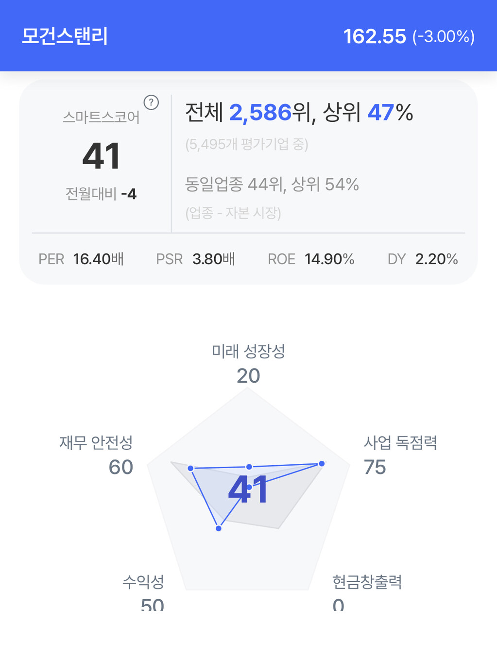 | 모건 스탠리 주가 분석. (자료=초이스스탁) |