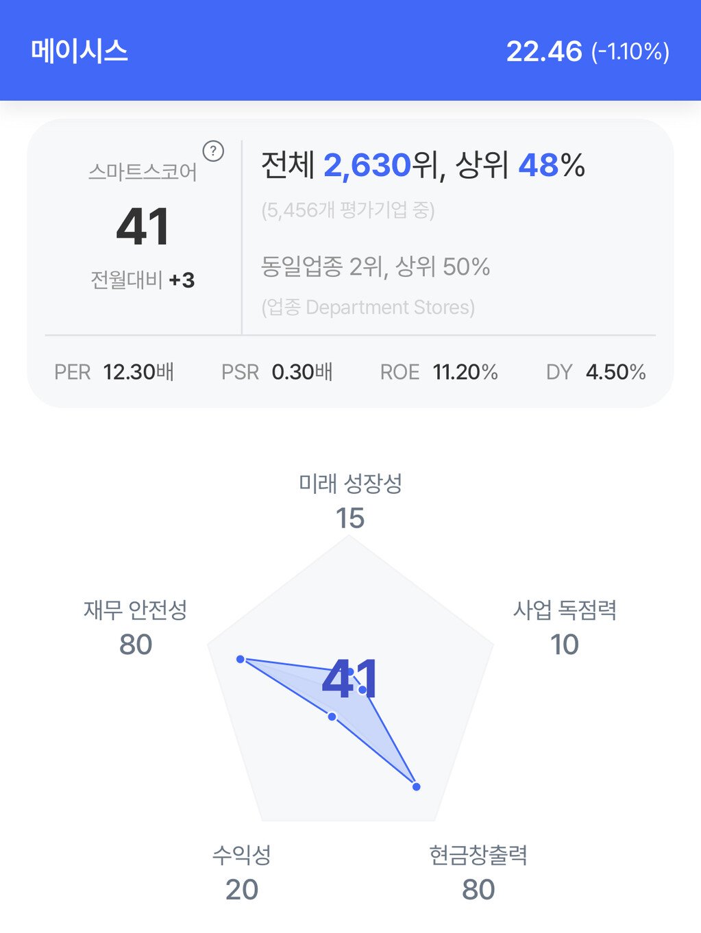 | 메이시스 주가 분석. (자료=초이스스탁) |