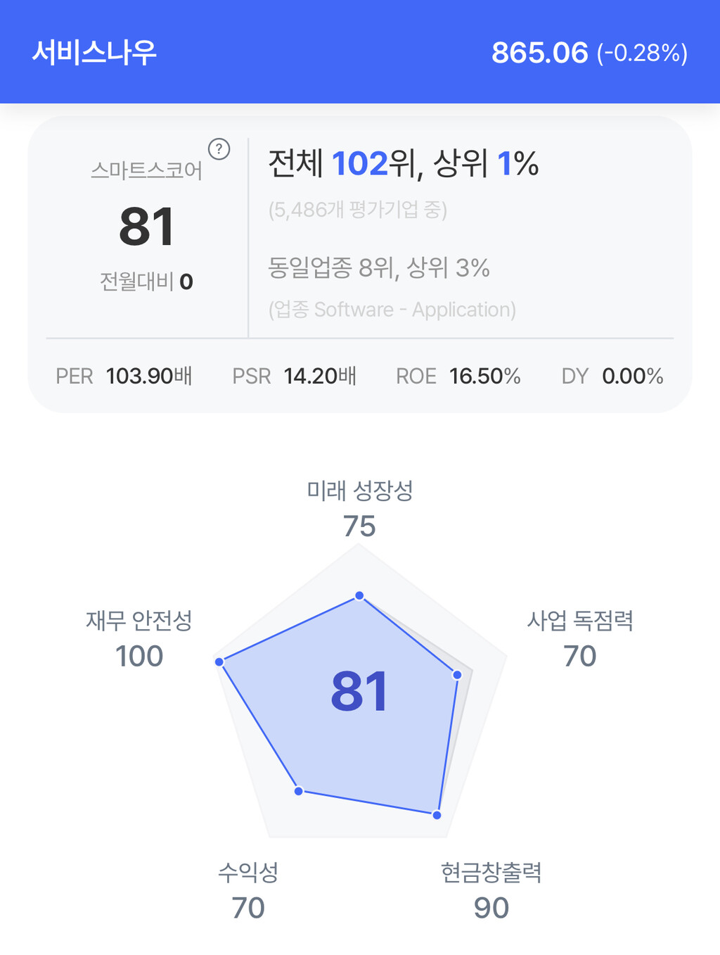 서비스나우 주가는 0.28% 하락한 865.06달러를 기록했다.