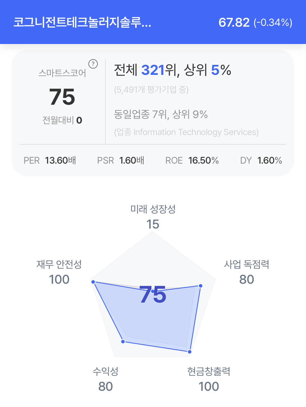 | 코그니전트 주가 분석. (자료=초이스스탁) |