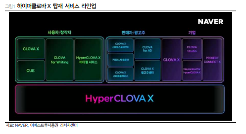 오린아 연구원은 "하이퍼클로바X가 탑재된 서비스들이 지속적으로 출시될 예정이고, 특히 B2B 상품들이 가장 먼저 수익화에 나설 전망으로 비용도 일정 부분 커버 가능할 것"이라며 "앱 개편을 통한 광고 및 커머스 부문의 체질 개선도 기대된다"고 분석했다. 이에 투자의견 매수와 목표주가 27만5000원을 유지했다.