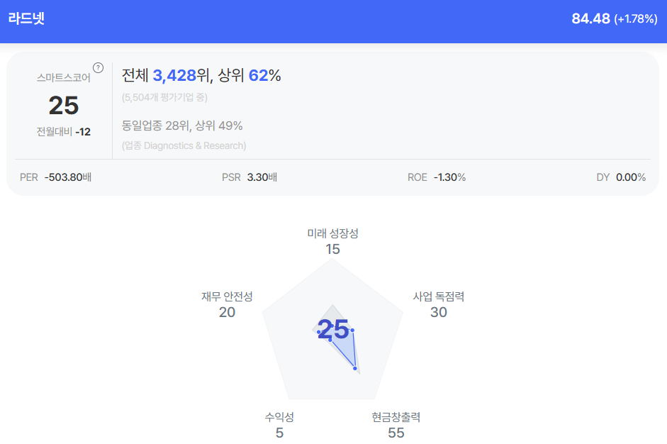 | 라드넷 종목진단 (출처=초이스스탁) |