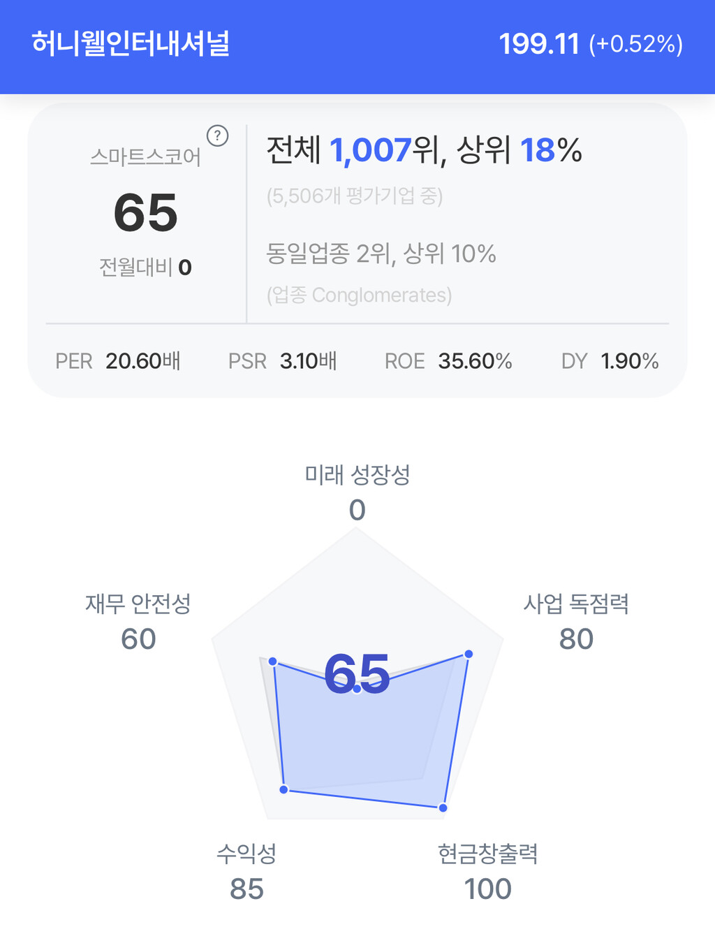 | 허니웰 인터내셔널 주가 분석. (자료=초이스스탁) |