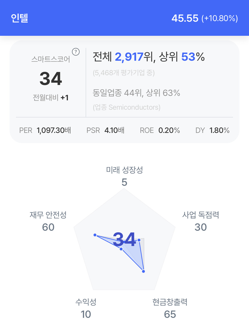 | 인텔 주가 분석. (자료=초이스스탁) |