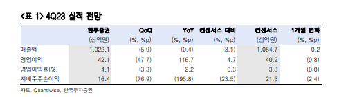 강은지 연구원은 "악성 재고로 인해 훼손되었던 유지 사업의 수익성은 지난해 4분기에 손익분기점(BEP) 수준까지 도달했을 것"이라며 "상반기 중 흑자 전환에 성공할 것"이라고 전망했다.