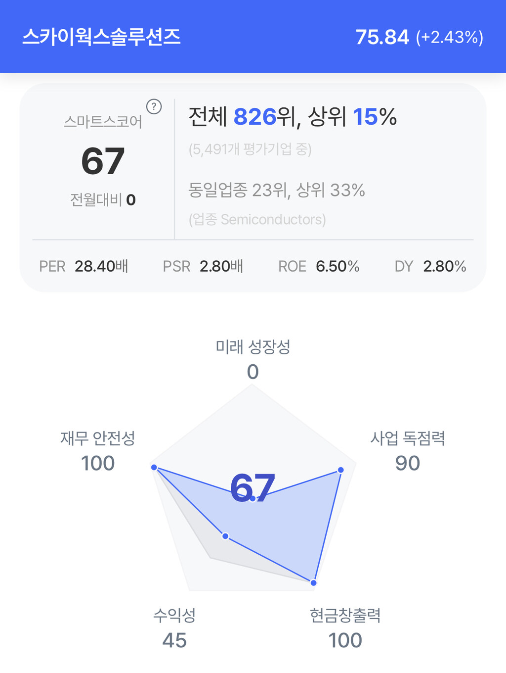 스카이웍스 주가는 75.84달러로 2.43% 상승 마감했다.