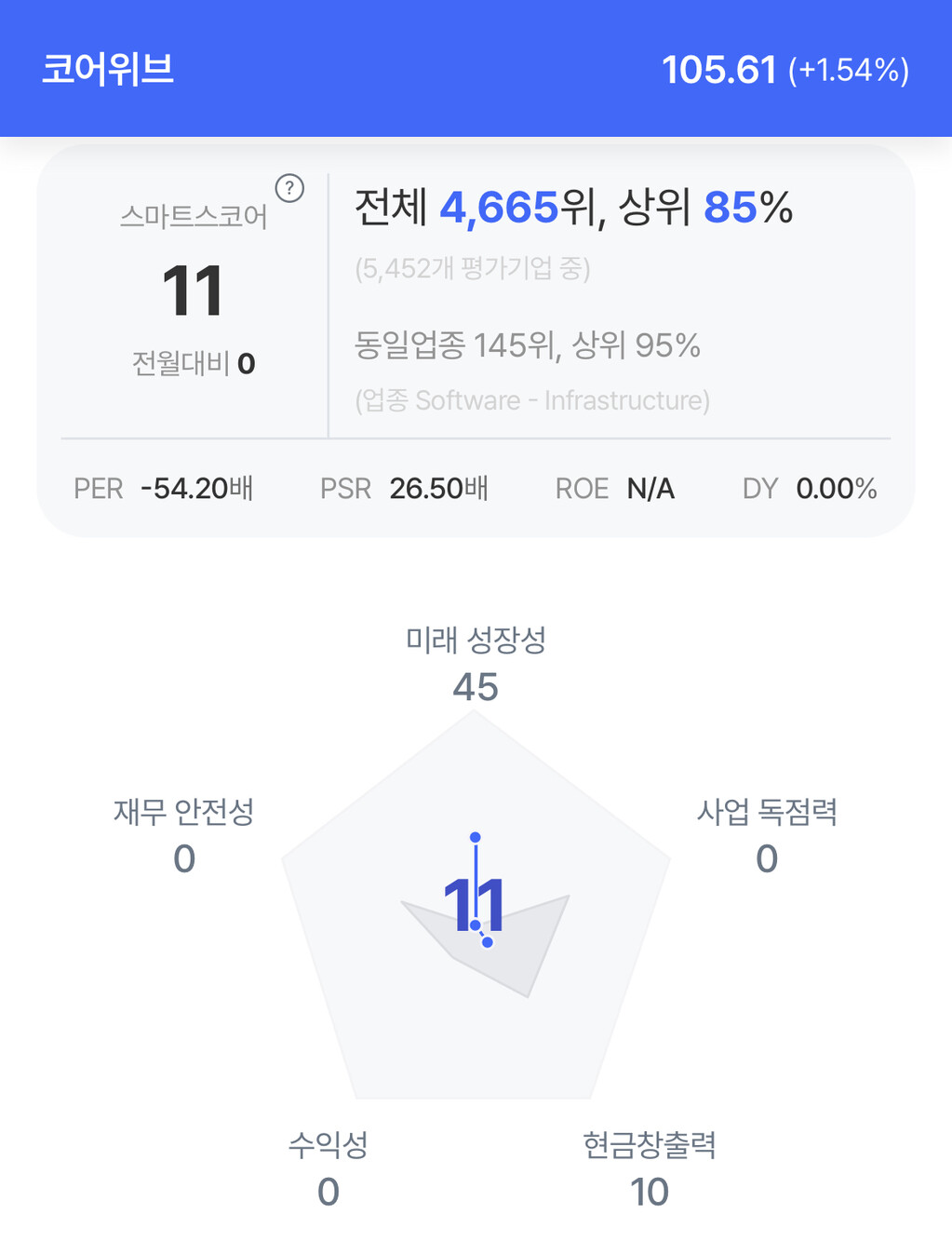 | 코어위브 주가 분석. (자료=초이스스탁) |