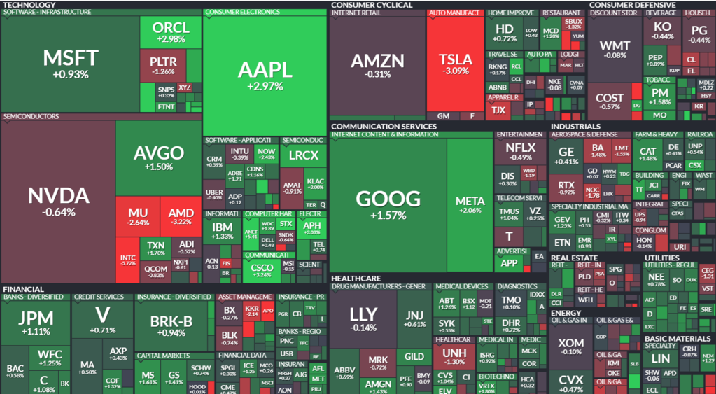 뉴욕증권거래소(NYSE)에서 다우존스30산업평균지수는 전장보다 0.64% 오른 4만9412.40에 거래를 마감했습니다. 스탠더드앤드푸어스(S&P) 500지수는 전장보다 0.5% 상승한 6950.23, 나스닥종합지수는 0.43% 오른 2만3601.36에 장을 마쳤습니다.