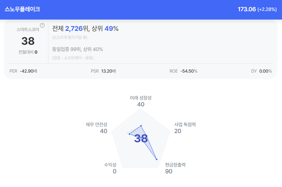 | 스노우플레이크 종목진단 (출처=초이스스탁) |
