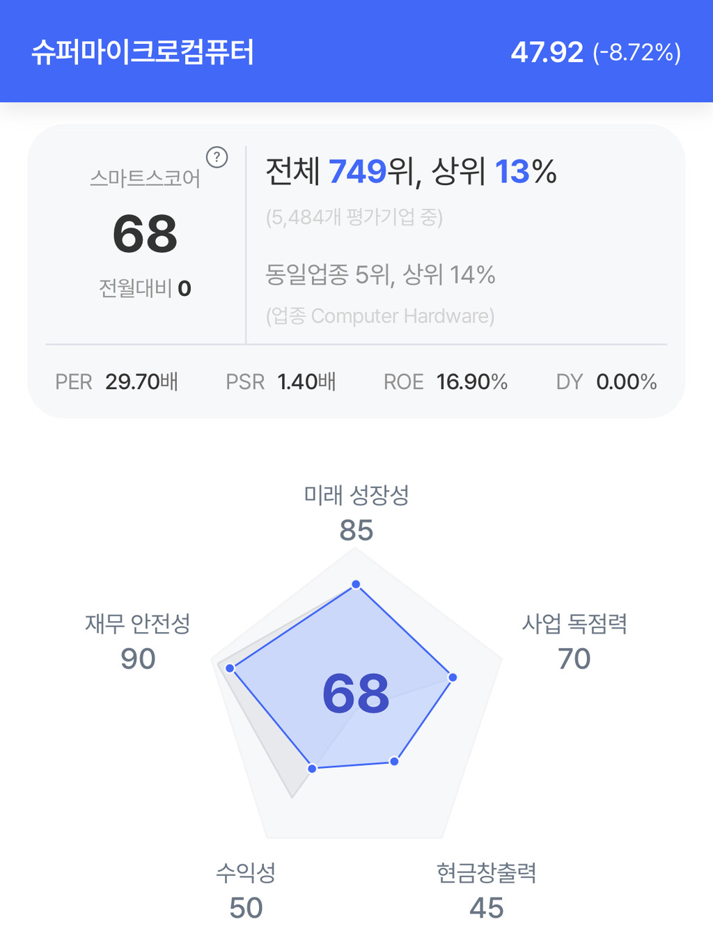 | 슈퍼마이크로 컴퓨터 주가 분석. (자료=초이스스탁) |
