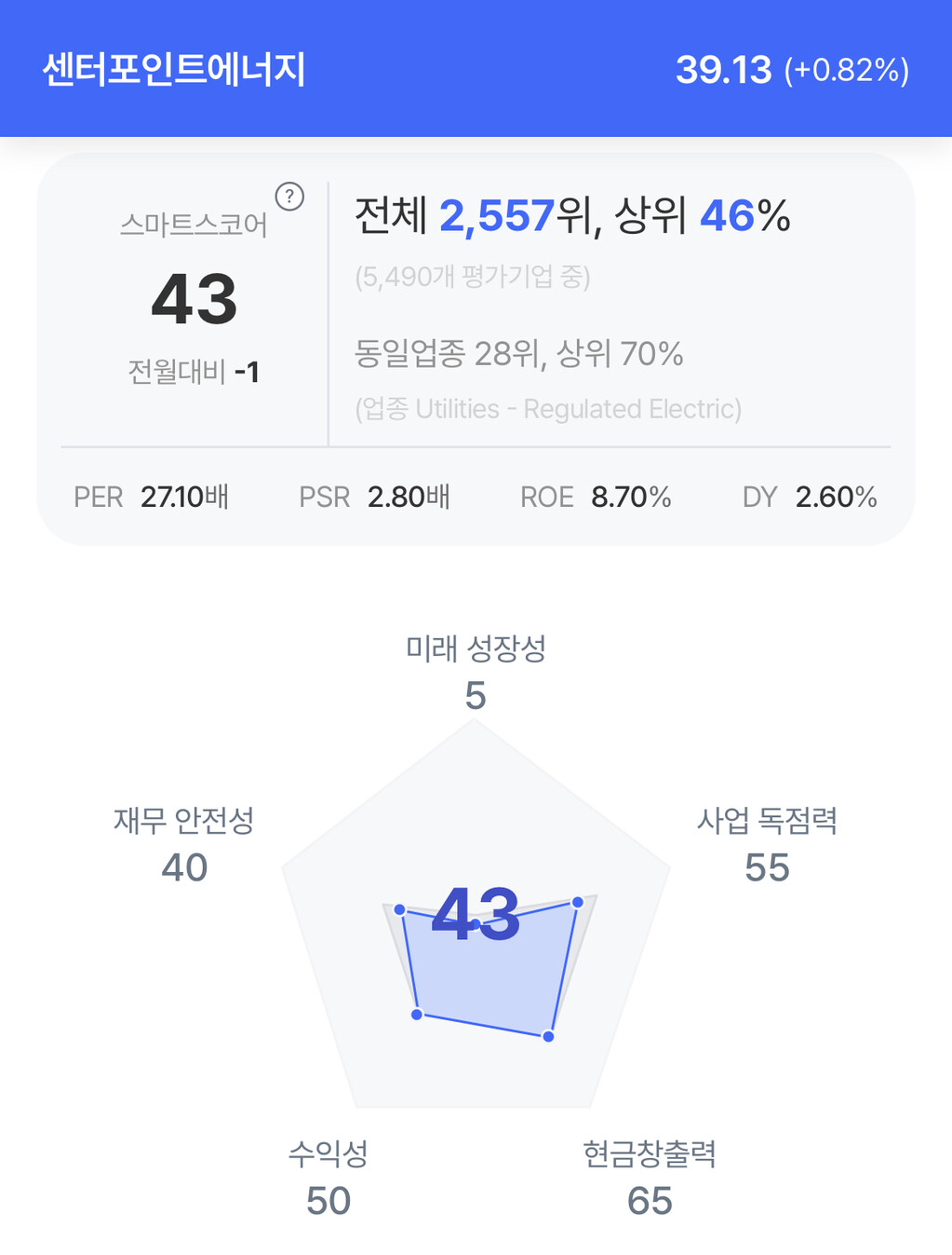 | 센터포인트 에너지 주가 분석. (자료=초이스스탁) |
