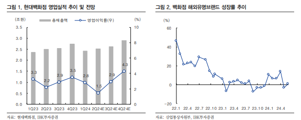 IBK투자증권에 따르면, 현대백화점의 2024년 2분기 연결 기준 매출액은 9685억 원으로 전년 대비 0.2% 감소하고 영업이익은 375억 원으로 전년동기대비 32.5% 줄어 시장 기대치530억 원을 약 30% 가량 하회할 것으로 추정된다. 1분기에 이어 2분기에도 이익 성장이 쉽지 않다는 평가다.