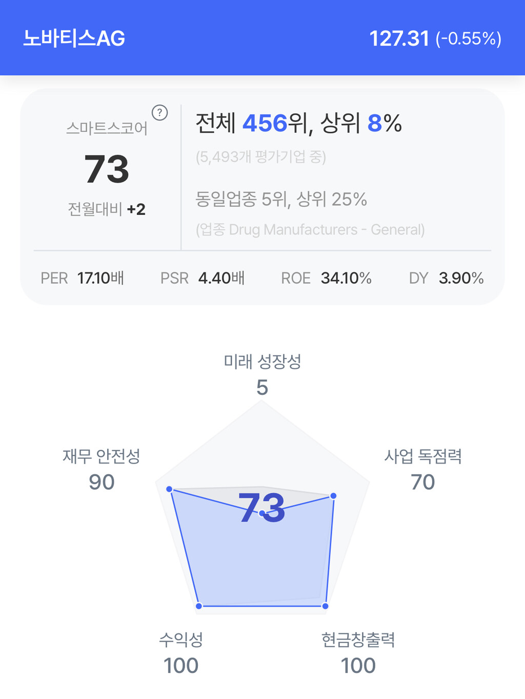 | 노바티스 주가 분석. (자료=초이스스탁) |
