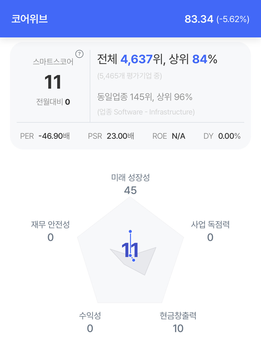 | 코어위브 주가 분석. (자료=초이스스탁) |