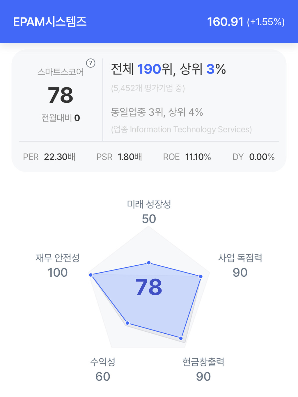 EPAM은 금융, 소프트웨어, 소비재 부문에서 꾸준한 수요를 확보하며 안정적인 실적 흐름을 이어가고 있다.