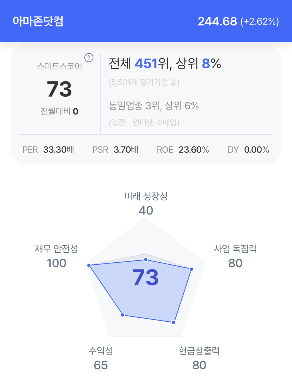 주가는 244.68달러로 2.62% 상승 마감했다.