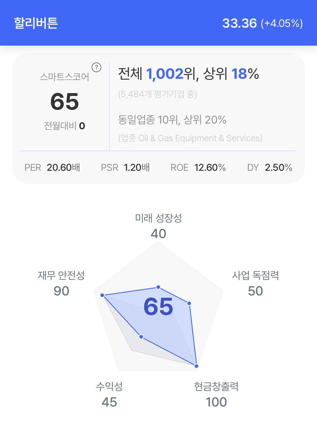 할리버튼 주가는 실적 발표 이후 33.36 달러로 4.05% 상승 마감했다.