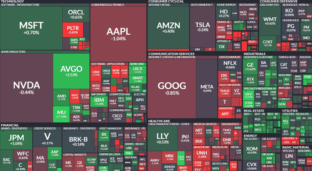 뉴욕증권거래소(NYSE)에서 다우존스30산업평균지수는 전장보다 0.17% 내린 4만9359.33에 거래를 마감했습니다. 스탠더드앤드푸어스(S&P) 500지수는 전장보다 0.06% 밀린 6940.01, 나스닥종합지수는 0.06% 떨어진 2만3515.39에 장을 마쳤습니다.