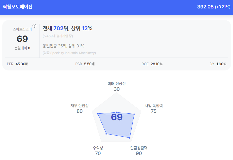 | 로크웰오토메이션 종목진단 (출처=초이스스탁) |