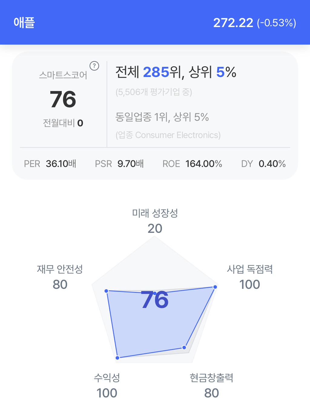 주가는 0.53% 하락한 272.22달러로 마감했다. 올해 들어서는 12.23% 상승했다.