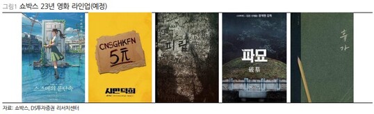 쇼박스의 올해 영화 라인업은 총 5편으로 본격적인 영화 실적 성장이 기대된다. 3월 <스즈메의 문단속> 배급 대행을 시작으로 <시민 덕희>, <피랍>, <파묘>, <휴가>까지 매분기 투자 영화의 배급이 예정되어 있다. 올해 5개 작품으로 추정되는 쇼박스의 총 동원 관객수는 1200만명 이상으로 영화 부문 총 매출액도 1000억원을 돌파할 것으로 예상된다.