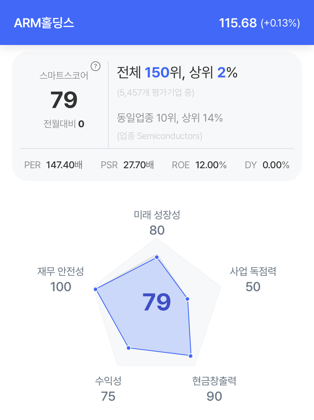 암 주가는 115.68달러로 1% 미만으로 소폭 상승 후 마감했다.