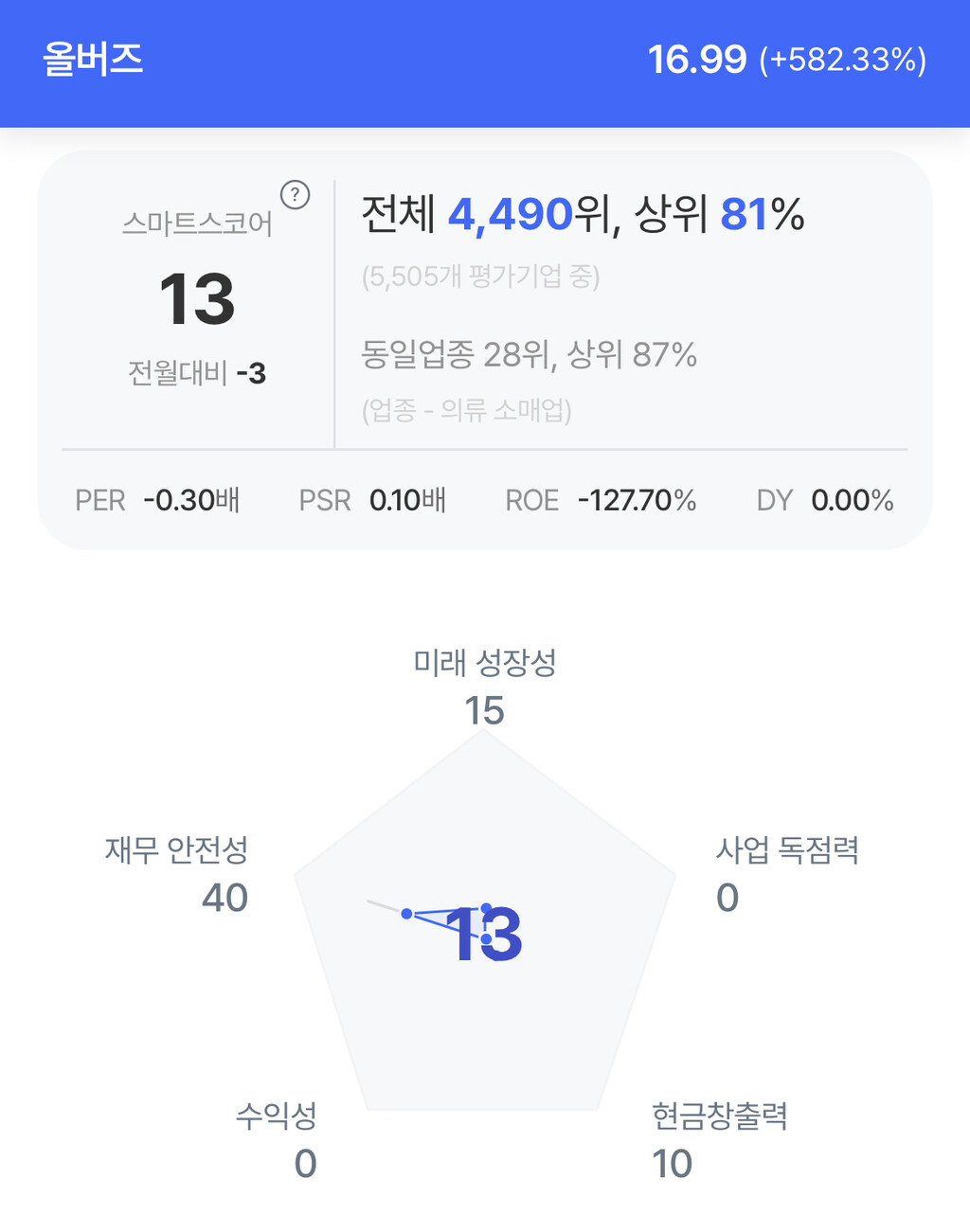 사업 전환 소식에 올버즈 주가는 급등했다. 15일 발표 이후 주가는 500% 이상 폭등했으며, 주당 3달러 미만이던 주가가 장중 약 17달러까지 치솟았다.