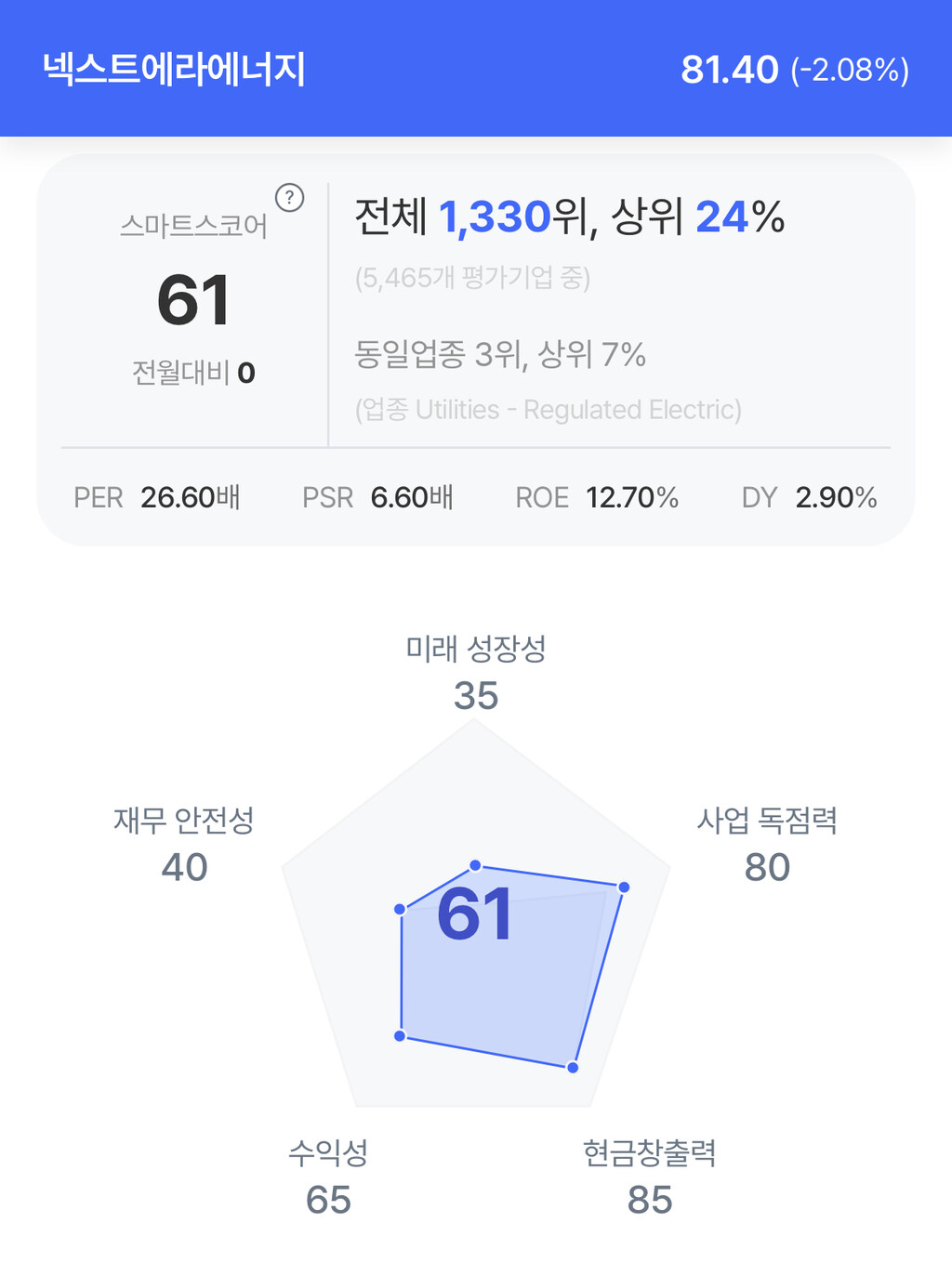 넥스트에라는 전력 수요 증가에 힘입어 올해와 2026년 조정이익 전망치를 상향 조정했다. 2025년 주당 조정이익을 3.62~3.70달러, 2026년은 3.92~4.02달러로 예상했다.