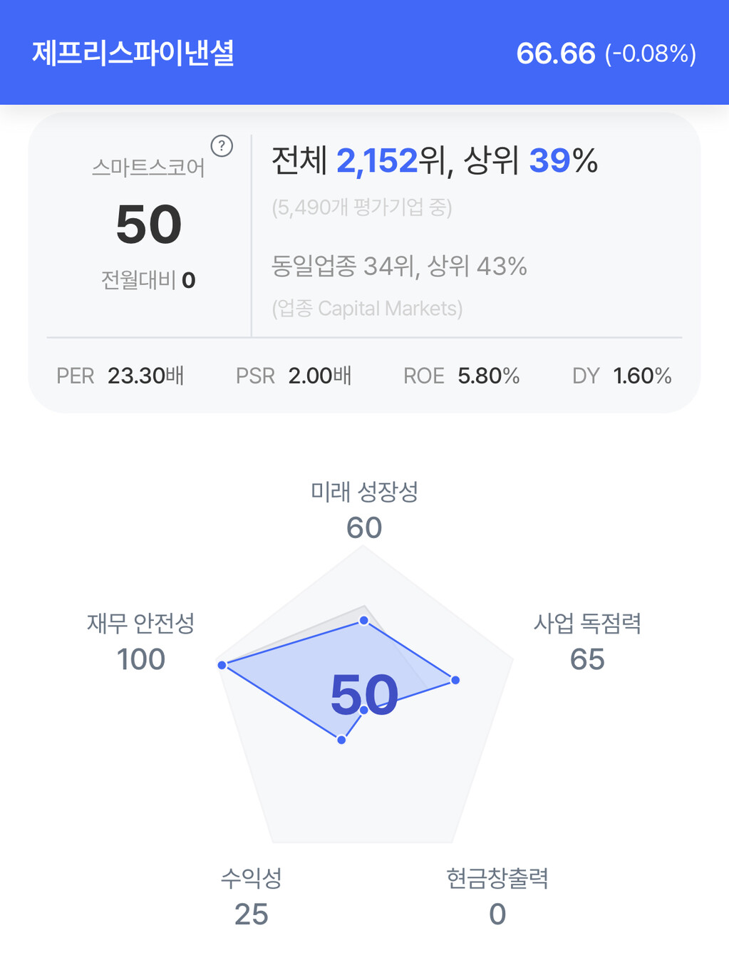 | 제프리스 주가 분석. (자료=초이스스탁) |