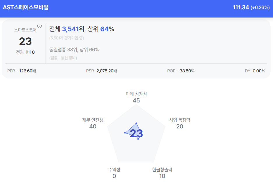 | AST스페이스모바일 종목진단 (출처=초이스스탁) |