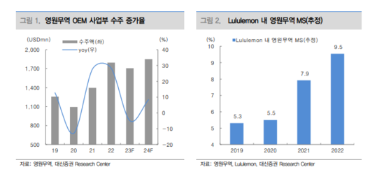 대신증권에 따르면, 영원무역의 4분기 매출액은 8394억원으로 전년 대비 19% 감소하고, 영업이익은 1279억원으로 34% 줄어들 것으로 추정된다. OEM 사업부의 경우 3분기에 이어 오더 감소가 지속되면서 달러 기준 매출액이 전년 대비 17% 감소할 것으로 전망된다.
