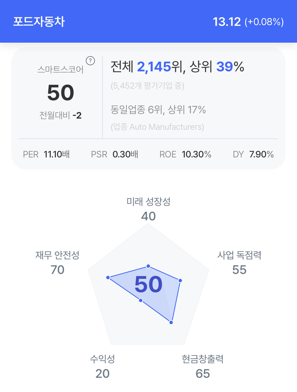 | 포드 자동차 주가 분석. (자료=초이스스탁) |